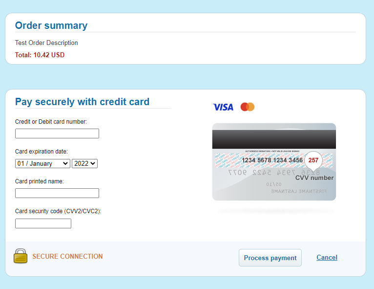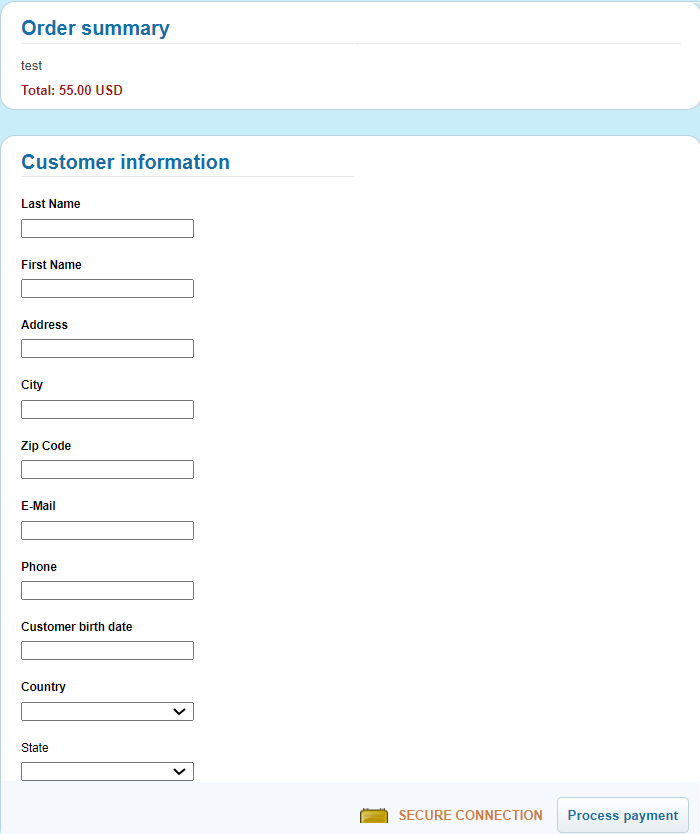 Buy Now Button integration is relevant for Connecting Party who has limited portfolio of products to sell. It is the easiest way to integrate with Fortechlab. This way of integration doesn’t require much technical effort. Buy Now Button integration also allows Connecting Party to exclude itself from storing, processing, or transmitting Payer’s cardholder data or other sensitive payment details. Such data is submitted by Payer on Fortechlab hosted customer details form and payment form in PCI DSS certified environment.