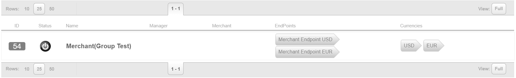 Endpoint group is an entity that combines several Endpoints and Master Endpoints in different currencies. The Endpoint Group simplifies the integration of a Connecting Party business to Fortechlab Payment Gateway when working with various currencies. This screen allows to view configured Endpoint Groups.