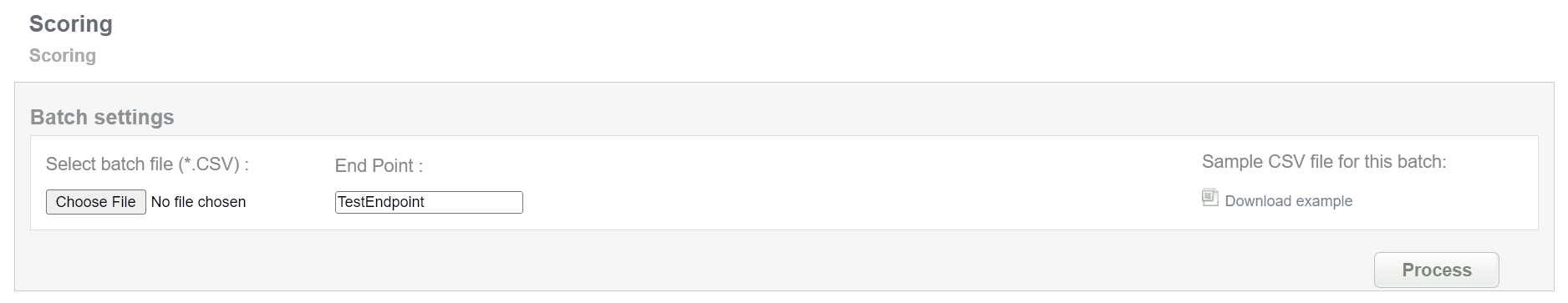 This batch allows to get information about card scoring. Collect order IDs and needed card data, assigned by Fortechlab system and enter all information to the CSV file and upload it to receive card scoring information. An example of CSV file for upload is available on the same screen.