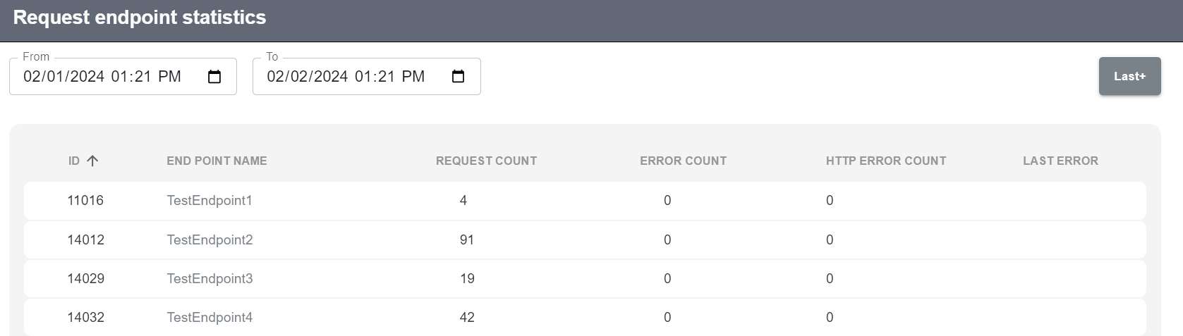 Managers are able to monitor requests to Endpoints by getting this statistical table: