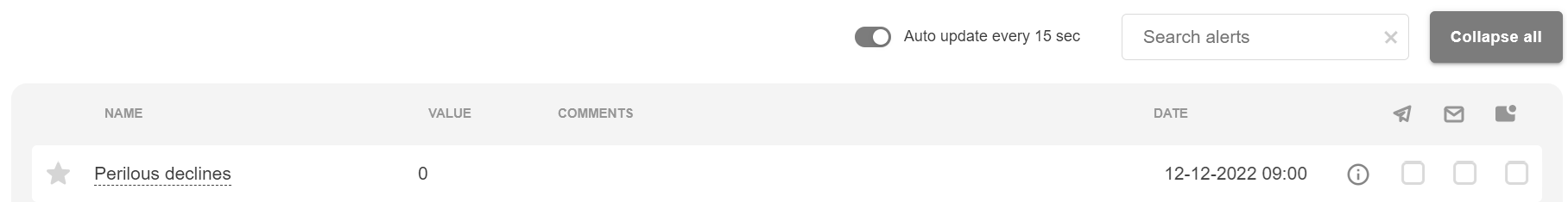 This section is located in Overview. This section displays triggered perilous declines which were selected by Manager.
