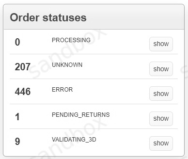 To browse transactions with the selected status, click on the Show button: