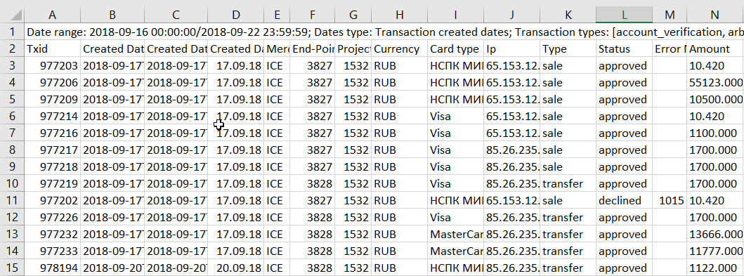 This report contains the list of transactions for the specified time period. To download the necessary data, the following criteria are used: dates, date type, transaction types, change status, transaction id, recurrent filter, time zone, CSV encoding. This report can also be downloaded by API for automated reconciliation or analysis: Remote transactions report. Additional criteria can be added by pressing the Criteria button: order status, currency, endpoints, projects.