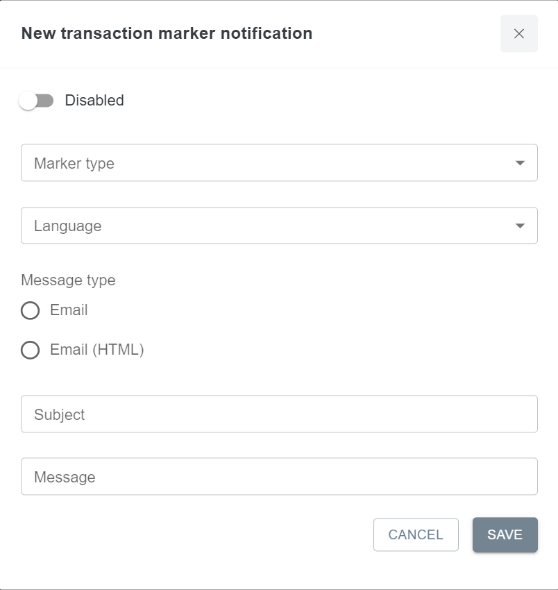 Transaction Marker Notification supports Message Templates. Additionally $!{MARKER_TYPE_NAME} was added.