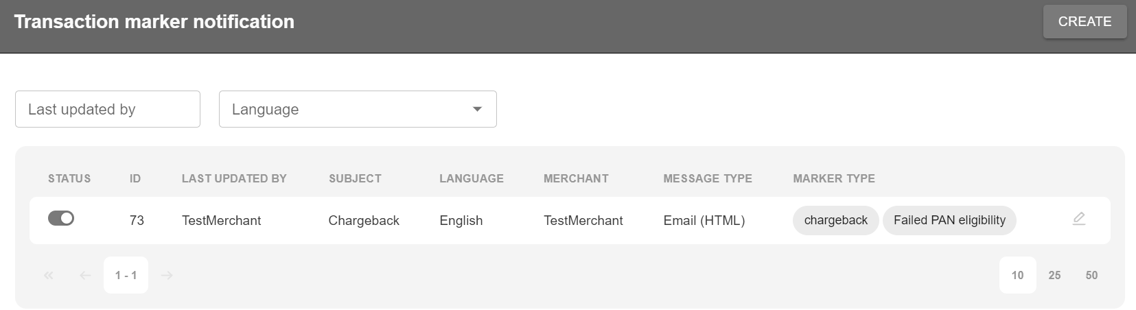 The Transaction marker notification tool is used to notify users about specific issues that might happen to transactions and usually require quick response. Each time the specified transaction marker is triggered, it will send email notification to user’s email address. For example, if notifications for chargebacks are enabled, user will get a new email notification for each chargeback applied to a processed transaction. Email content can be customized.